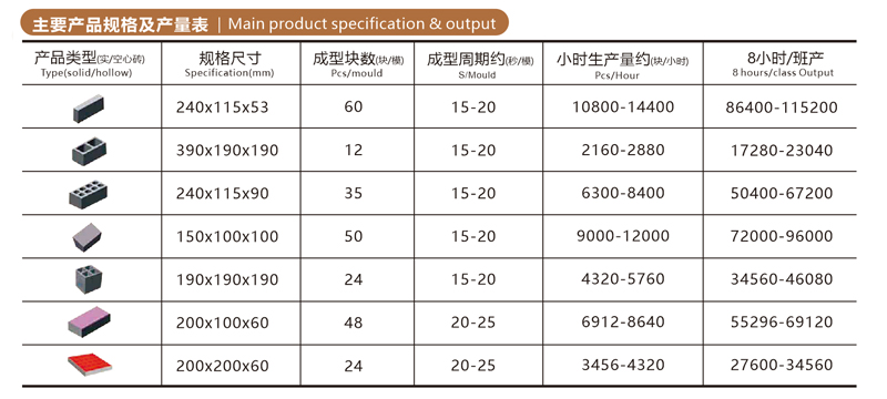 | 磚數(shù)量(塊/8h) | 39272-54000 | 3.1KG/塊 | |